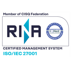 Certificazione ISO/IEC 27001:2022 UNI CEI EN ISO/IEC 27001:2024+A1:2024 con estensione alle linee guida ISO/IEC 27017:2015 e ISO/IEC 27018:2019 rilasciata da RINA Services S.p.A. in data 11.05.2020 (certificato num. 605/20) per i campi di attività: